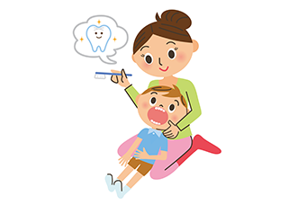 正しい歯磨きの仕方を指導いたします。保護者の方へは仕上げ磨きのアドバイスも行います。