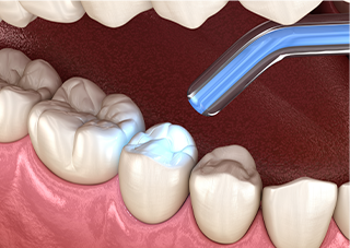 治療で削った箇所に、詰め物をはめ込む形で修復します。