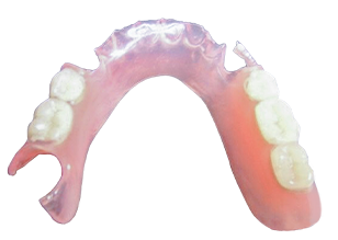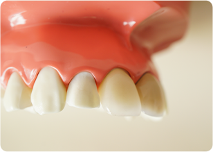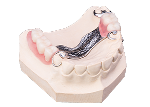 粘膜に装着する部分が金属でできた入れ歯です。薄く作製することができるためお口の中の異物感が抑えられます。また素材の性質により熱伝導率が高いため、食事の温度をしっかりと感じられることも特長です。