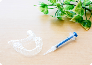 患者様のお口に合わせて作製したマウスピースにご自身で薬剤を注入、装着していただくホワイトニングです。ご自分のペースで歯を白くしていくことができ、またお好みの白さまでじっくりホワイトニングを重ねることが可能です。